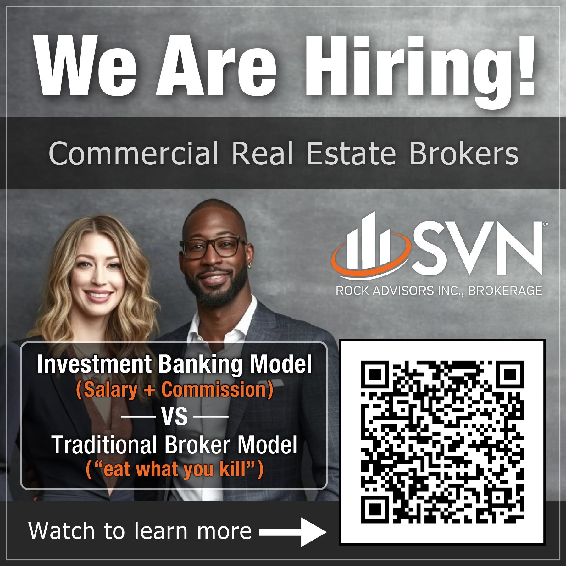 SVN Rock Advisors Inc., Brokerage is a dynamic, fast-paced, and entrepreneurial commercial real estate company. We have a laser-focused market segment and a vision for growing a business that provides services and content unlike anyone else in the industry! We are expanding and looking to add a number of Commercial Real Estate Agents to our Major Transaction Team. If you are a licensed agent with “deal” experience, in Apartment or other asset classes (not residential), we want to hear from you!