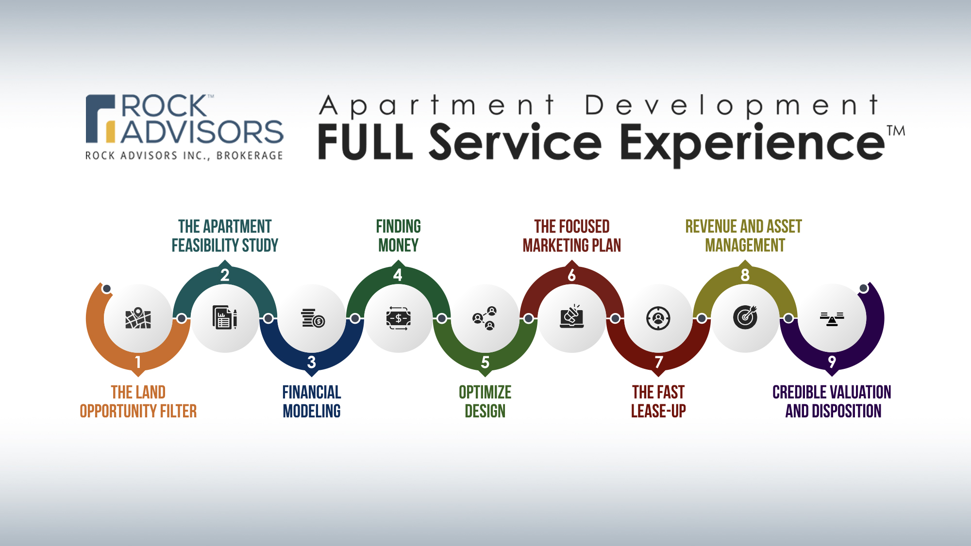 From Acquisition, Consultation, Feasibility Studies, Lease-up to Final Disposition, Rock Advisors has the Multifamily Experience to Help Developers Succeed.
